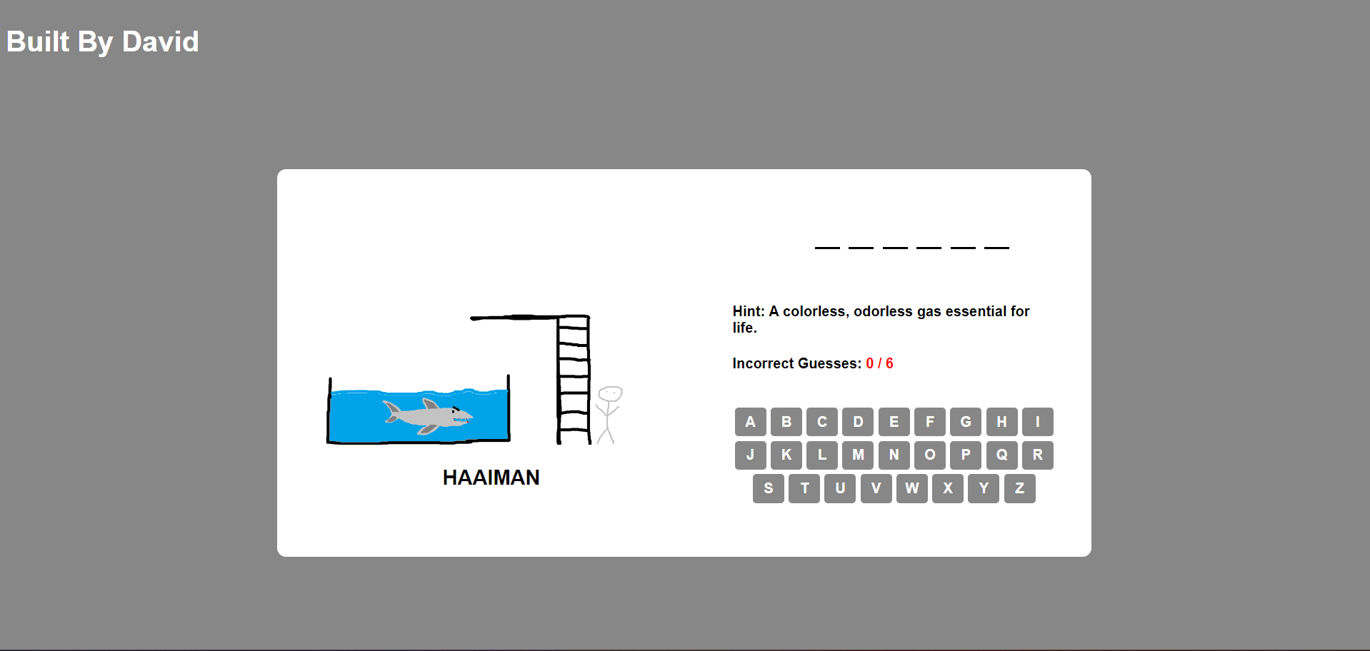 A simple hangman game build in HTML and JavaScript (Not responsive for mobile).